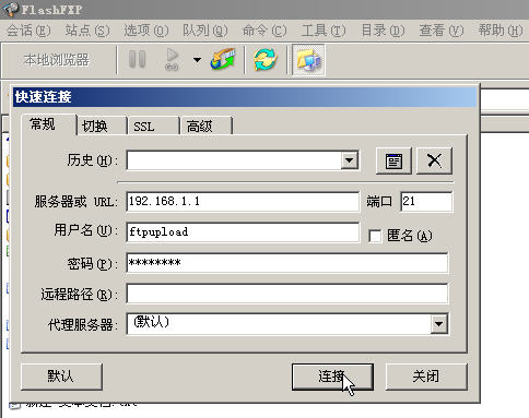 別名填系統(tǒng)的帳號名,在此例子中,我們填入 ftpupload 目錄填帳號的主文件夾路徑 允許下載和上傳 添加完成 可以看到建立了一個新的"ftpupload",這樣就添加完成了. 接下來可以在本地用FTP客戶端軟件(例如 flashfxp)連接,就可以上傳和下載了.