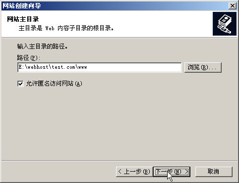 | 1. | 接上一個例子,我們假設(shè)你已經(jīng)把網(wǎng)站源文件用ftpupload這個FTP傳到了E:\webhost\test.com\www目錄下,那么我們可以建立這個網(wǎng)站了. | |