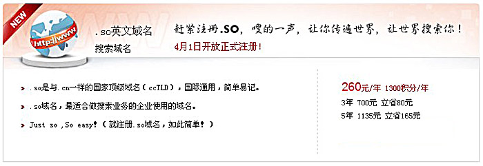 2)“so”這個(gè)單詞在英文中的意思——“因此,如此”,是一個(gè)非常常見的單詞,如sina.so(新浪如此),easy.so(如此簡(jiǎn)單),有趣易記。